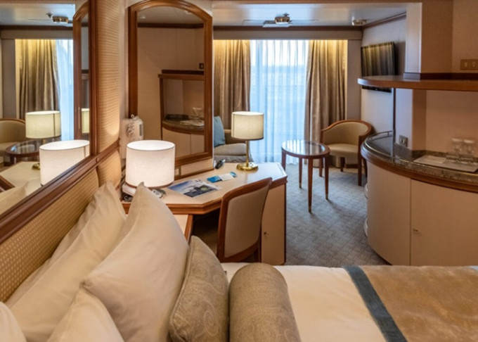 | M1 - Mini Suite s balkónom Club Class 30 m² (vrátane balkóna). Max 3 osoby (gauč). Výhody Mini Suite + Výhody Club Class. | 6 928 € 3 464 € za osobu |